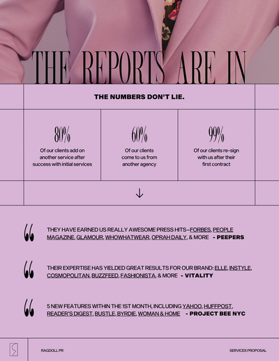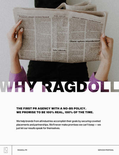 RAGDOLL PR came to us with a clear goal - redefine how people perceive PR and their place in it. Known for landing clients in Vogue, Forbes, GQ, Allure and more, they were tired of being mistaken for a fashion-only firm. They wanted a brand that matched their reach, reflected their results, and made it clear they weren’t here to play by the industry’s old rules.